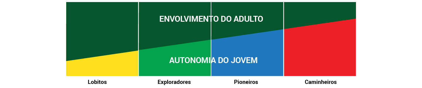 A finalidade do Escutismo é que a criança ou jovem se desenvolva em autonomia, logo o papel do adulto não pode ser senão o da promoção dessa autonomia, sendo que esta relação entre a autonomia da criança ou jovem e o envolvimento, ou a intervenção, do adulto deve perspectivar-se de uma forma dinâmica, progressivamente decrescente e qualitativamente diferenciada, ao longo do percurso educativo da criança ou jovem através das Secções.